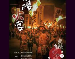 詳細を見る毎年桜の開花する時期に開催される観櫻火宴。 小浜温泉から車で約10分の千々石橘神社を舞台に、総勢200名の武者たちが松明を片手に、桜咲き誇る橘公園を練り歩く火祭りです。 夜に行…