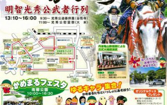 詳細を見る孫市まつり 総勢500人を超える武者行列が、戦国絵巻さながらに城下町やJR亀岡駅前を練り歩く亀岡で一番大きな春のお祭りです。 祭りの内容 戦国時代の智将・明智光秀公は、初代丹…